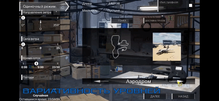 - «Конструктор дрона» — создание собственных моделей: выбор компонентов, настройка характеристик, сохранение проектов.
