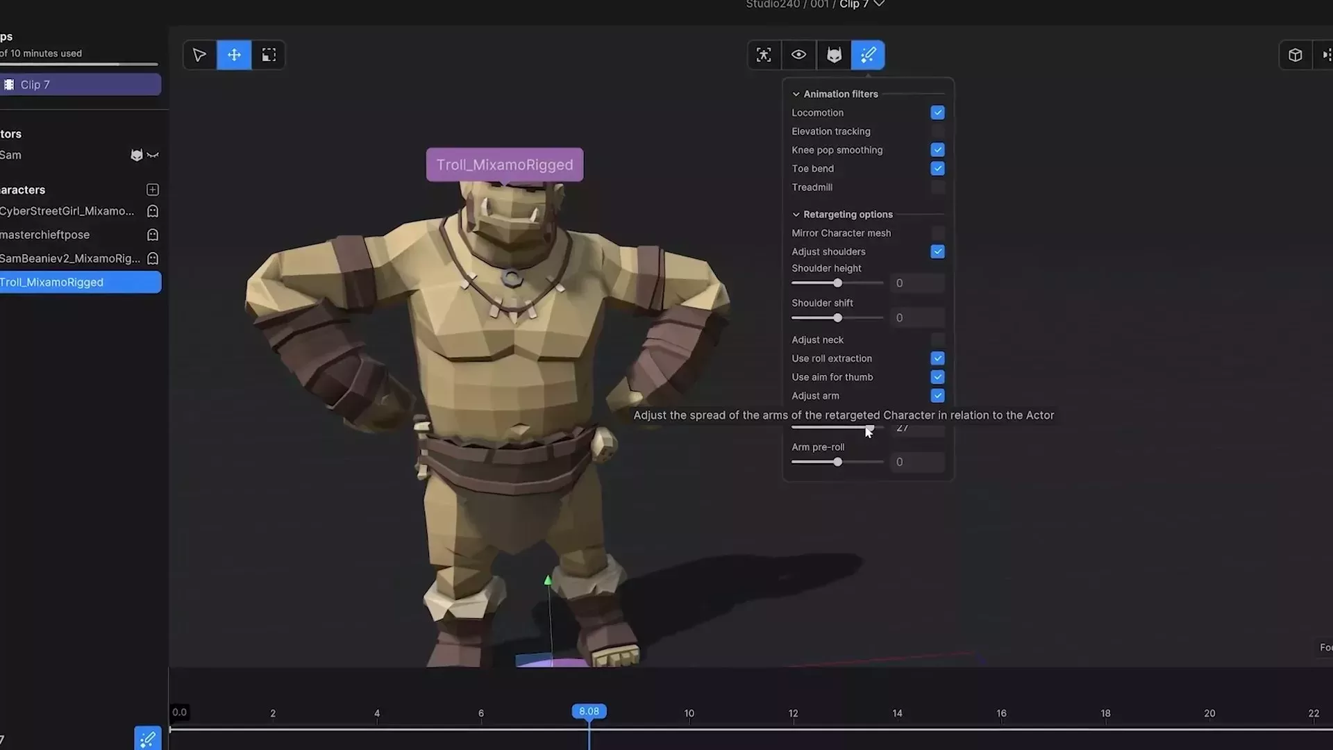 - Фильтр локомоции оптимизирует анимацию ходьбы и бега для естественного перемещения персонажа в пространстве.